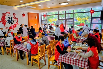 近日,江西省南昌市人大常委会组织机关党员干部职工赴西湖区社会福利院,开展以“弘扬雷锋精神、传承中华美德”为主题的亲情关爱志愿活动,让学雷锋活动融入日常、化作经常,用实际行动积极营造敬老爱老助老的良好社会氛围。图为志愿者和福利院的老人们在一起包饺子。 |
