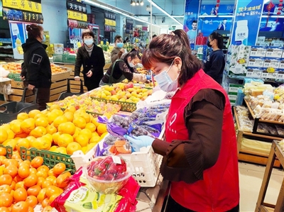 鸡西市滴道区东兴街道白云社区专职网格员在疫情期间为特殊隔离户代买水果。 |