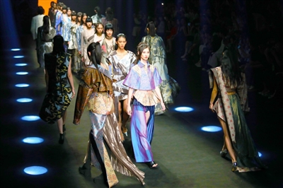 此后各大秀场里,中华优秀传统文化元素也频频出现。如在以先秦重要古籍《山海经》为设计灵感的秀场上,设计师将《山海经》中的先秦文化印记巧妙而有趣地融入时装的细节之中。当模特身穿兼具民族古韵及时尚元素的服装登场时,带给观众耳目一新的感觉。