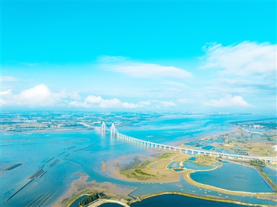 2023年12月28日,广东有4条高速公路正式通车,分布在粤港澳大湾区、粤东地区和粤西地区。图为12月15日,鸟瞰南三岛大桥项目。