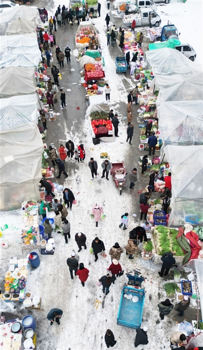 甘肃省临夏回族自治州积石山县绊藏镇新年集市热闹场景。 |
