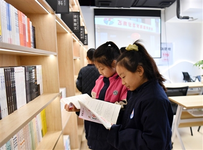 2月26日,雄安新区容西片区贤溪社区公益图书馆暨“XIN空间”揭牌仪式举行。据了解,“XIN空间”是首都图书馆、天津图书馆、河北省图书馆共同谋划的新合作项目,阅览面积190平方米,1.8万余册藏书品类齐全。图为小朋友们在馆内选阅图书。 |
