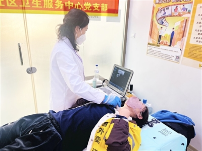 社区卫生服务中心为美团女骑手做身体健康检查。 |