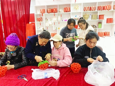 蛟河市民主街道河南社区组织居民开展手工艺品编织活动。 |