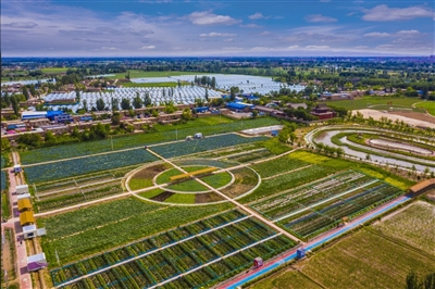 宁夏回族自治区灵武市郝家桥镇胡家堡村渔乐营地风光鸟瞰。灵武市委宣传部供图 |