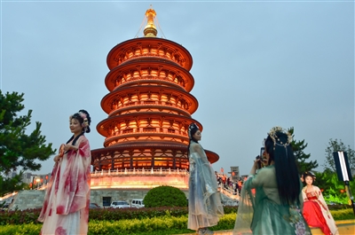 近期,众多游客来到河南省洛阳市老城区古城历史文化街区和隋唐洛阳城国家遗址公园,感受夜幕下独特的古建筑风貌,体验沉浸式文旅休闲项目,品味古都历史文化的独特韵味。 中新社发 黄政伟摄