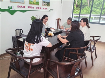 武夷山市武夷街道八角亭社区工作人员在茶话室与居民谈家常解民忧。 |