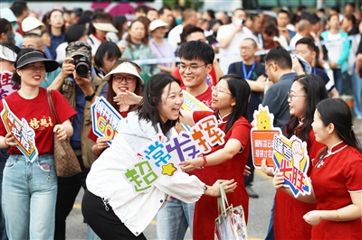 6月10日,随着北京、山东、浙江等地高考结束,2024年全国高考正式落下帷幕。据教育部统计,今年全国高考报名人数1342万人,比去年增加51万人。图为6月7日,江苏省南京市雨花台中学考点外,送考的老师为考生加油鼓劲。
