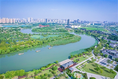 江苏省扬州市运河三湾景区风光秀美。扬州市委宣传部供图 |