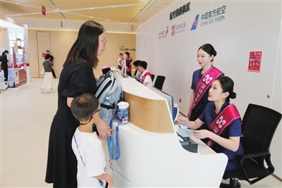 深中通道通车试运营当日,深圳机场中山航空港以及深中机场专线同步开通。据悉,深圳机场中山航空港往返深圳机场的巴士每天共72班次。图为旅客在深圳机场中山航空港值机区办理业务。 |