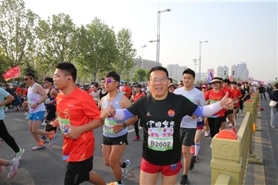 中国警跑团发起人齐继伟在安阳马拉松赛中。 |