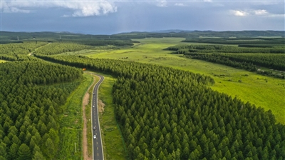 坝上大滩草原,风能、太阳能设备遍布草原林场,生态文明建设作为国家战略为千千万万群众造福。图为大滩草原秀美风光。 |