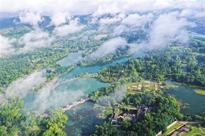 承德避暑山庄是中外游客了解中国历史和文化的重要窗口,也是传承与弘扬中华优秀传统文化的重要场所。图为透过云雾俯瞰避暑山庄。 |