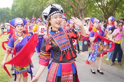 广西壮族自治区百色市万人游舞嗨歌,现场气氛热烈而欢快。马志伟摄 |