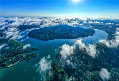 湖北宜都清江天龙湾国家湿地公园秀丽山水、水天一色。 |