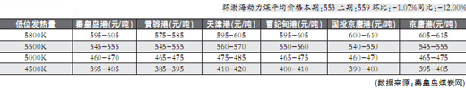 本报告周期环渤海地区主流动力煤品种交易价格的运行情况如下: