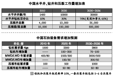 在未来二十年中,随着我国水平井、钻井和压裂工作量的增加,页岩气装备制造也将迅猛发展;随着技术的不断提高和发展模式不断优化,装备制造业前景可观。