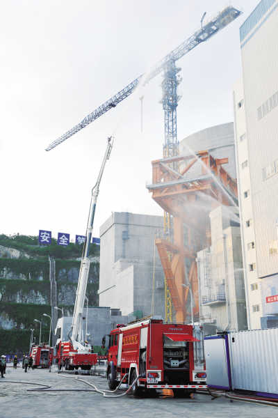 日前,阳江核电基地举行跨区域大型灭火救援联合演练。阳江市消防支队、江城大队、阳东大队、阳春大队、阳西大队、核电专职消防队、核电保卫及阳江市应急办、供电局、公安等单位出动车辆18台、110余人参加演练。