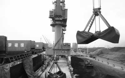 近日,随着气温逐步升高,全国电网即将进入迎峰度夏。连日来,江苏连云港港口煤炭码头开辟绿色通道,保证各大发电厂电煤储备,确保电力迎峰度夏期间正常发电。 图为工人在煤炭码头转运电煤。