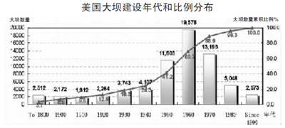 美国现代化的水库大坝建设始于20世纪20年代初,到60年代达到顶峰。20世纪初美国的各类水库大坝总数不超过5000座,30-40年代有了一个较快的发展,共新建了约8000座水库大坝。这一阶段,美国水库大坝建设快速发展的重要原因之一是,第一次世界大战后出现的大萧条和西部发生的洪旱灾害,使美国政府确立通过加大对基础设施建设的投入,拉动国内经济发展,开发中西部水资源及进行田纳西流域综合治理的战略。美国政府出台了一系列法案,建设了一大批水库大坝,包括著名的哥伦比亚河上的大古力坝、科罗拉多河上的胡佛坝等。