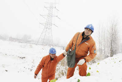 日前,江苏省盱眙县普降大雪,为保障供电安全可靠,供电公司员工全面巡视所辖供电线路,严防线路覆冰造成倒杆断线等险情发生。