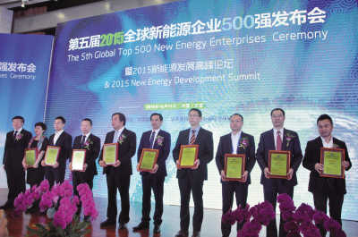 在中国能源报社主办的“2015全球新能源企业500强发布会暨新能源发展高峰论坛”上,多家为新能源产业作出贡献的企业收获殊荣,它们或是业内标杆,或是冉冉新星;多位专家学者、业内人士为新能源的发展建言献策,凝聚智慧,会场内外留下了珍贵瞬间……