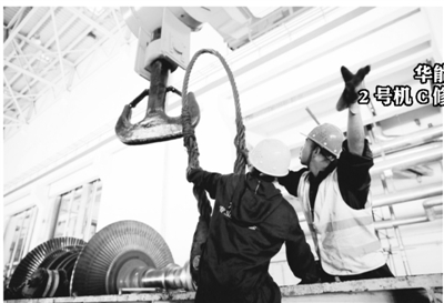 日前,华能北方电力公司金桥热电厂2号机组C修工作开始实施。此轮C修以打造精品工程为抓手,大力确保修后机组长周期稳定运行。图为汽轮机本体检修人员起吊低压缸转子。