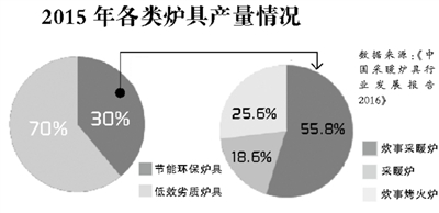 长久以来,采暖炉具行业主要面向农村,一直都是市场化发展、“自生自灭”。炉具生产企业数量众多,主要以民营为主,产品结构单一、同质化现象严重。据《中国采暖炉具行业发展报告2016》数据,2015年,我国节能环保炉具的实际用户数约为保有量的23%,大部分用户仍在使用低效、劣质炉具,比例高达77%。
