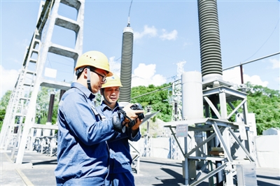 近日,南方电网深圳供电局全力以赴,确保十九大期间深圳可靠供电。据了解,该局组织梳理《十九大保供电设备线路清单》,共涉及69座变电站,58回110千伏及以上输电线路、62回10千伏馈线。图为该局工作人员在220千伏下围岭电缆终端场,利用红外测温仪对输电设备进行测温。
