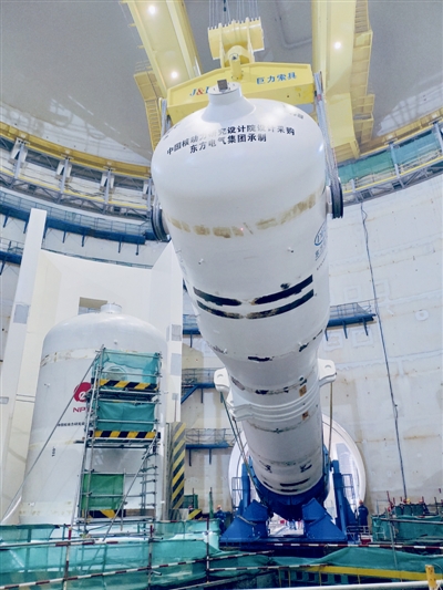 吊装中的福清核电6号机组三环蒸汽发生器。 马建伟/摄