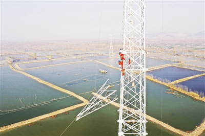 近日,国网山东省电力公司投资建设的500千伏枣庄-金乡线路工程微山湖中心区组塔工作全部结束。据悉,这是山东第一条在湖区内施工的超高压线路工程。该线路147-166号铁塔区间是跨湖段,线路长11.423千米,其中9座铁塔位于湖区内。