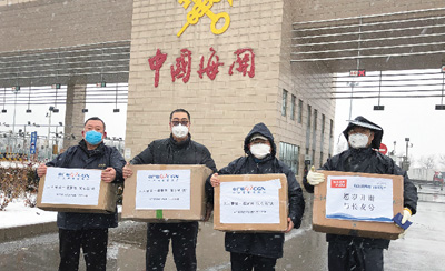 中广核在海外筹措的医用口罩、手套等防疫物资运抵武汉。图为防疫物资在国内清关。 |