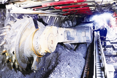 图为2月26日,河南能源永煤公司城郊煤矿职工在综采工作面进行巡检。 黄晨/摄