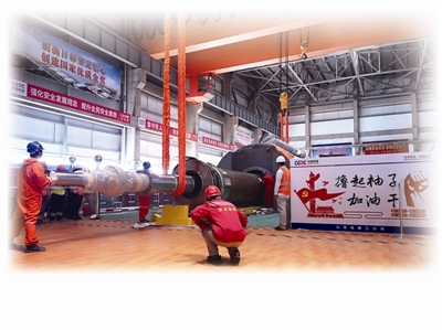 水冷壁安装是锅炉施工最紧要的节点,但燃烧器吊挂生根梁无法按时供货。江苏电建三公司项目副经理兼总工于德宏请缨,设计了临时吊挂梁,紧急采购并安装完成临时生根梁,确保了安装进度。“1号高压加热器就位时,设备也未按期到场。”项目施工管理部机务经理徐岚接着说,“我们自主发明了拖运轨道,借助千斤顶,完成了高压加热器的拖运、方向转换和就位。”