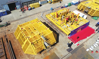 6月6日,由我国自主设计、建造和调试的首套深水水下多功能管汇系统,在中国海油下属海洋石油工程股份有限公司天津临港特种装备制造场地正式交付,标志着我国海洋油气水下生产装备自主研发、设计、制造和测试技术取得重要突破。图为交付现场。
