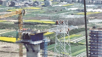 3月24日,在慈溪110千伏花湾线、陆庵线迁改工程现场,百余名国网宁波供电公司作业人员正在开展铁塔组立等施工作业。这标志着国家重点工程——通苏嘉甬高铁项目建设宁波段110千伏及以上电力迁改工程正式进入电气施工阶段。