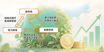 控排企业的碳配额作为质押物获取融资,用于购买绿电,抵消企业自身的碳排放,形成“碳变钱—钱买电—电抵碳”的闭环。
