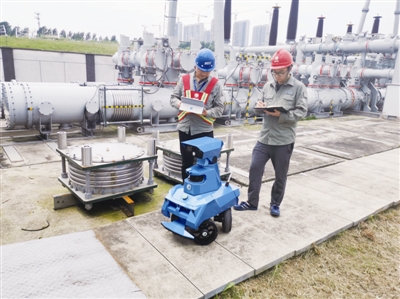 国网信通产业集团人工智能巡检机器人在变电站巡检。 |