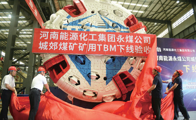 9月16日,国产首台煤矿全功能智能化岩石隧道掘进机“永煤先锋号”在中国铁建重工集团长沙第二产业园顺利下线,该设备由铁建重工集团、河南能源化工集团联合研制,将参与永煤城郊煤矿回风大巷建设。