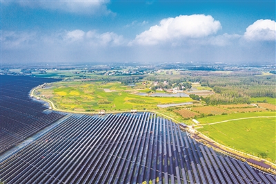 该电站采用“水上光伏发电、水下渔业养殖”的一地两用模式,综合利用水域面积2400亩,带动地方实现经济、生态双丰收。