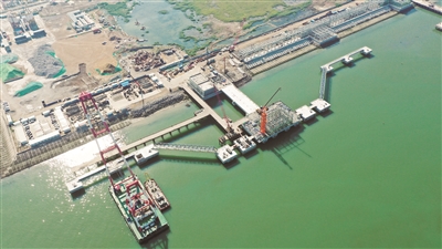 近日,北京燃气集团天津南港LNG应急储备项目配套码头工程水工主体结构顺利完工。LNG码头及工作船码头主体浇筑全面完成,标志着码头工程正式进入设备安装阶段,预计今年11月具备投产条件,并将与项目一期4座储罐同步投入使用。