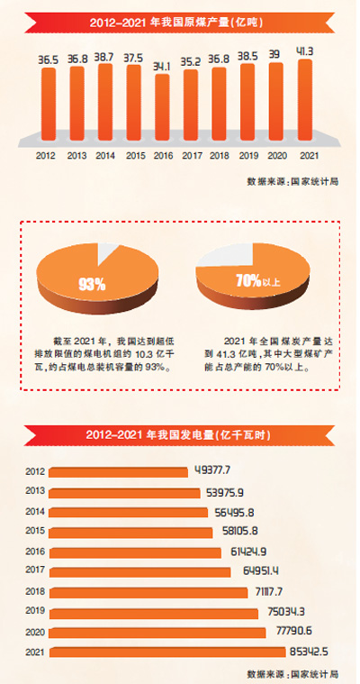 放眼全国,大批煤电机组持续加大节能降耗改造和综合能源利用。截至2021年,我国达到超低排放限值的煤电机组约10.3亿千瓦,约占全国煤电总装机容量的93%;全国6000千瓦及以上火电厂供电标准煤耗301.5克/千瓦时,比上年降低2.01克/千瓦时。至此,我国已建成全球最大的清洁煤电供应体系。