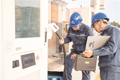秋天是乡村游旺季,南方电网广东惠州惠阳供电局良井供电所用电检查人员到乡村游玩旺地附近充电桩开展安全用电检查。曾韵诗/摄 |