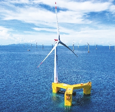 2021年12月7日,明阳智能全球首台抗台风型漂浮式海上风电机组在三峡阳江沙扒海上风电场投运。 |