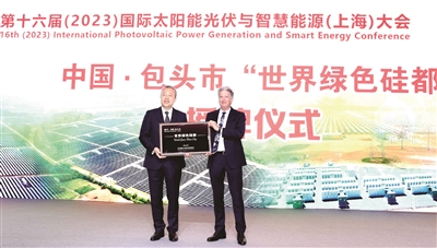 5月23日,在第十六届(2023)国际太阳能光伏与智慧能源(上海)大会开幕式上,当被誉为“太阳能之父”的马丁·格林教授代表全球绿色能源理事会,把书写着“世界绿色硅都”的牌匾送到包头市委副书记、市长张锐手上时,世界级的硅都建设有了具象,科技和产业实现“双向奔赴”,过去与未来实现“无缝对接”。