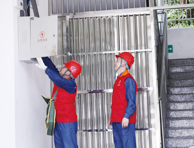 图为5月31日,国网志愿者在古龙岗中心小学开展“奉献光明 点亮梦想”志愿服务,为学校检查用电线路。 |