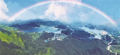 梅州抽水蓄能电站一期和二期工程共用上下水库,图为电站上下水库俯瞰图。 |
