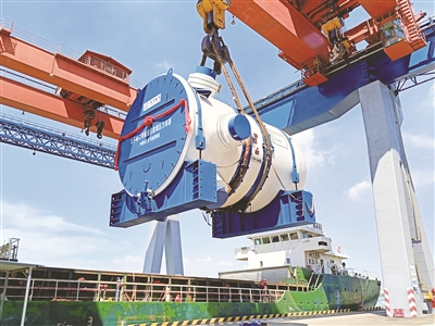图为中广核浙江三澳核电项目1号机组蒸汽发生器出厂。 |