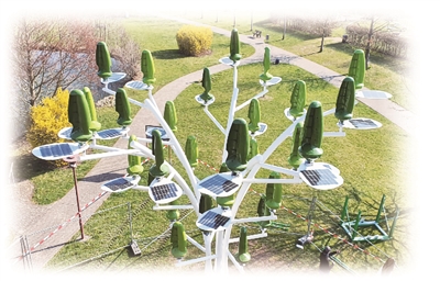 这款由法国初创企业“新世界风能”公司设计的风机,高约9.8米,宽约7.2米,在“树”上可安装多达36个微型风机作为“叶子”。