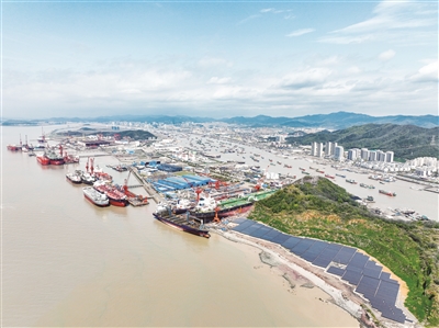 浙江省舟山市普陀区舟山万邦永跃船舶修造有限公司内的滩涂光伏发电站项目总装机6500千瓦,预计年发电量可达650万度,每年可为企业平均节省电费约20%,相当于每年可节约标准煤约2340吨,每年减少排放二氧化碳6480.6吨,实现经济效益与生态效益双赢。